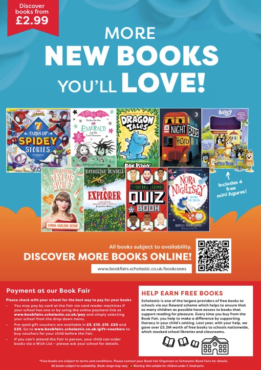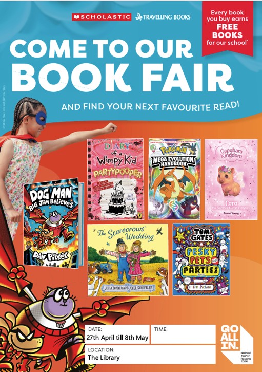 As part of our celebrations for the National Year of Reading 2026, we are very excited to announce that from Monday 27th April to Friday 8th May we will be running a Scholastic Book Fair in our Library!